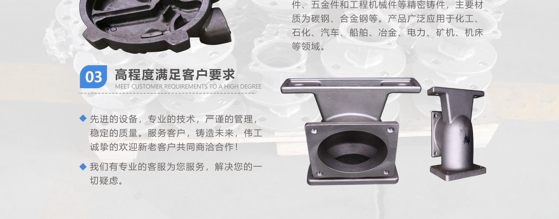安徽偉工機械科技有限公司,坐落于安徽蕪湖新蕪經濟開發(fā)區,是一家専業從事鑄造產品設計、研發(fā)、生產、銷售于一體的企業,公司為客戶的產品提供多樣的技術支持與設計,公司主要鑄造技術有潮模砂鑄造、硅溶膠精鑄工藝。主要產品有:不銹鋼閥門配件、泵閥配件、汽車配件、工業管道配件、工程機械配件、汽車配件等。材質為:低合金鋼、304、316、316L、鉻鉬鋼、哈氏合金、碳鋼、雙相鋼等。公司已先后通過ISO9001和TS16949等多種體系審核,以完備的管理手段和齊全的檢測設備滿足客戶需求,進的設備,専業的技術,嚴謹的管理,穩(wěn)定的質量。服務客戶,鑄造未來,偉工誠摯的歡迎新老客戶共同商洽合作